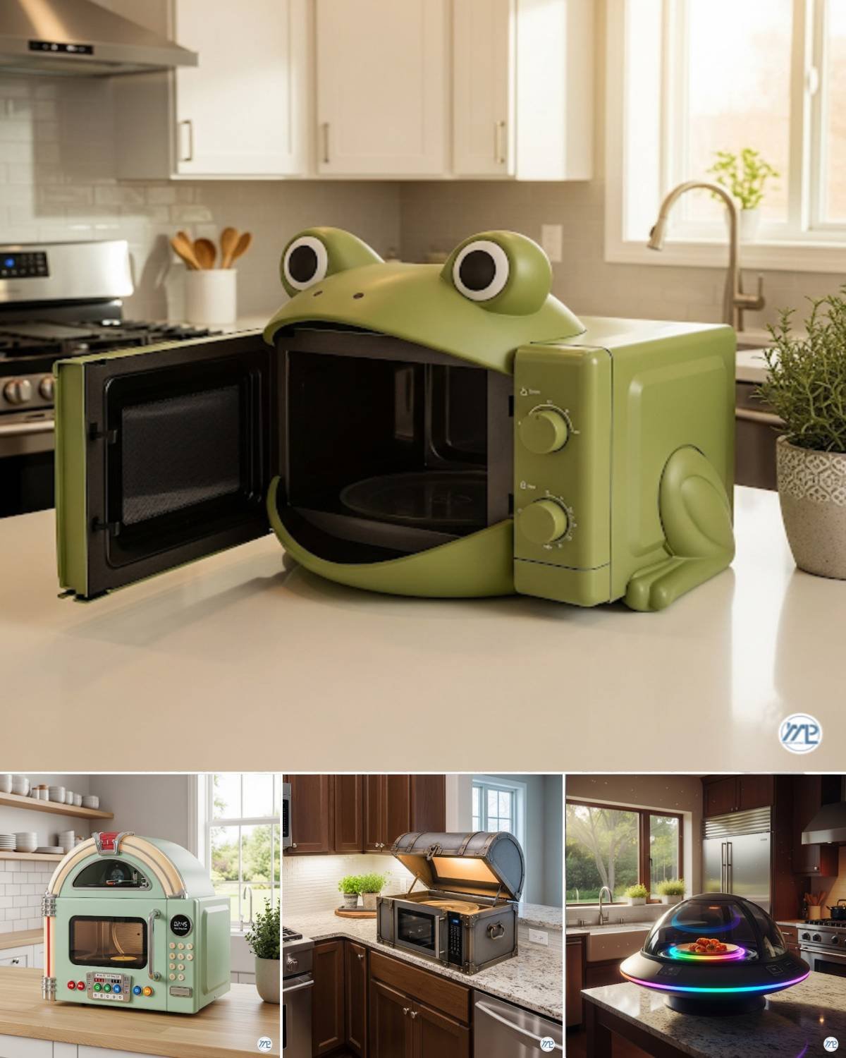 Forget plain stainless steel boxes — imagine a microwave shaped like a frog, a retro-style treasure chest, or even a mini UFO spaceship landing on your kitchen counter. These imaginative designs prove that home living can be as fun as it is functional, and that your appliances can reflect your unique personality and style.